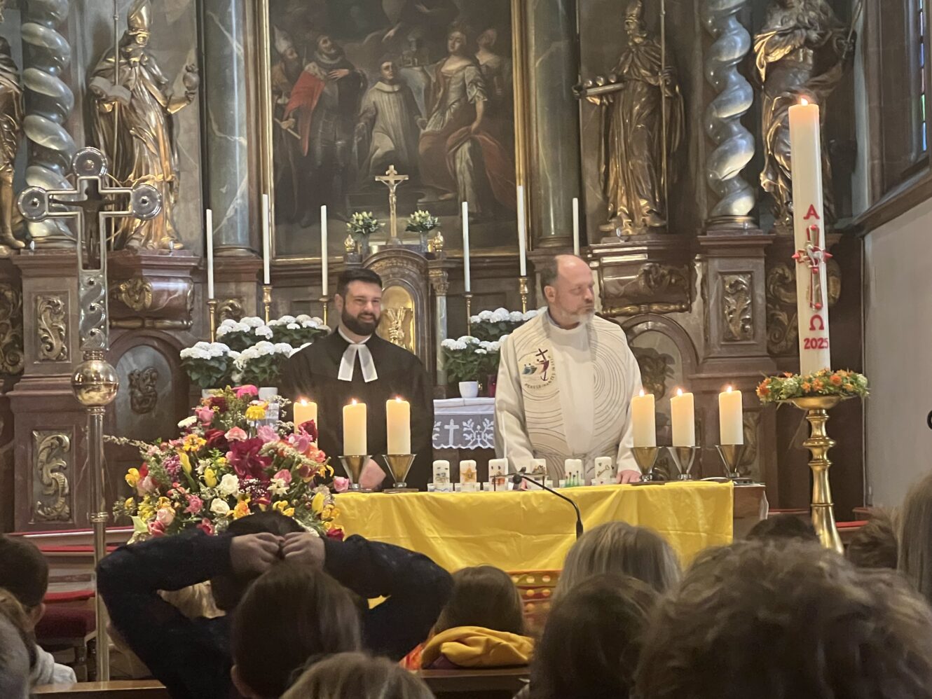 Brunn am Gebirge hat wirklich großes Glück mit seinen Religionslehrerinnen, Volksschuldirektorinnen, LehrerInnen und ErzieherInnen. Kaum woanders in der ganzen Erzdiözese können so großartig vorbereitete Ostergottesdienste gefeiert werden. Den ökumenischen Gottesdienst feierte Pfarrer Tom Kruczynski zusammen mit dem evangelischen Vikar Eike Claas Hoberg.