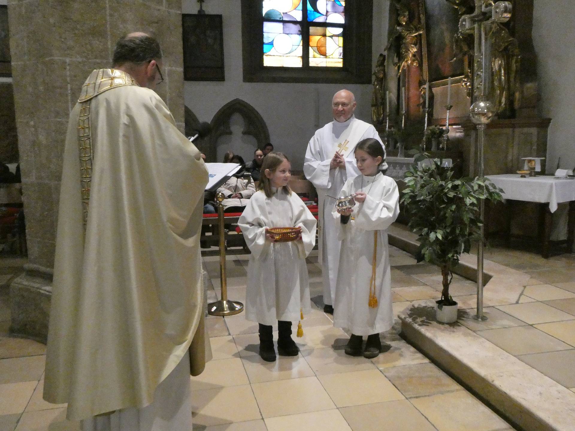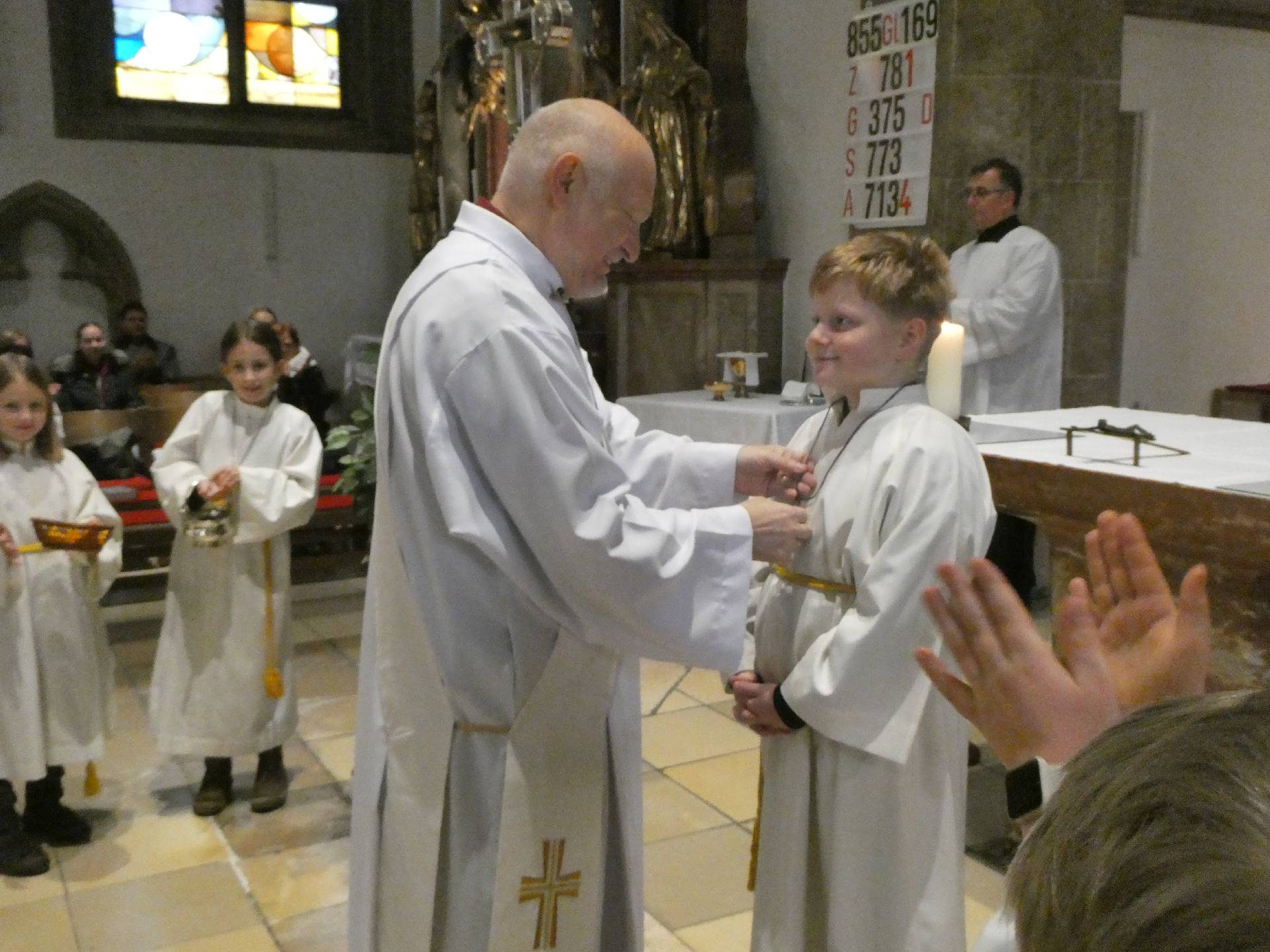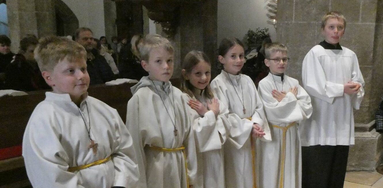 Heute ist ein besonderer Sonntag. Eingeführt im Jahre 1925 anlässlich des 1600-Jahr-Jubiläums des Konzils von Nicäa 325 von Papst Pius XI., ist dieses Fest damit 100 Jahre alt und damit genau 1700 Jahre nach dem ersten Konzil. Eingebürgert hat sich damit auch an diesem letzten Sonntag im Kirchjahr die Aufnahme neuer Ministranten. So hat sich auch bei uns ein junger Mann bereiterklärt, Christus als seinem König zu folgen. Hier einige Fotos aus der Zeremonie. Der Jungministrant bekam auch ein Kreuz vom Diakon Slava umgehängt, dieses hatte vorher Pfarrer Tom gesegnet. Von Jakob Schick wurde zusätzlich zum Orgelspiel von Michi Polklop die Messe mit herrlichem Trompetenspiel untermalt.