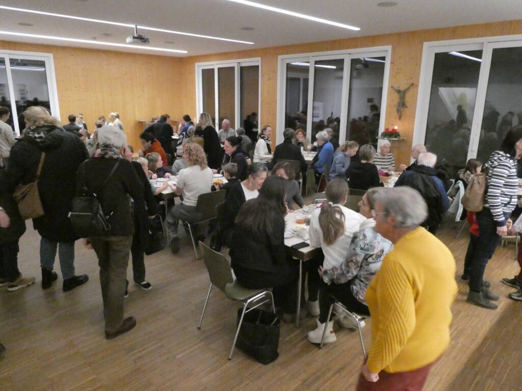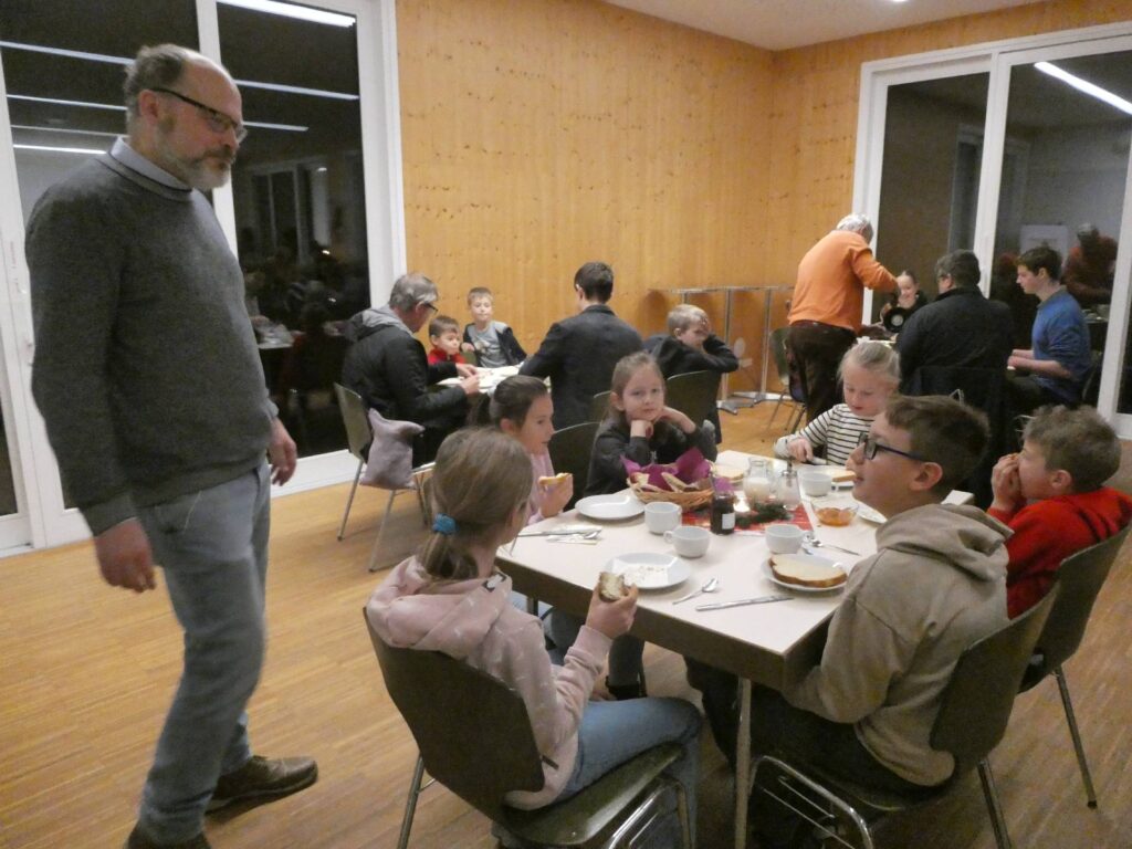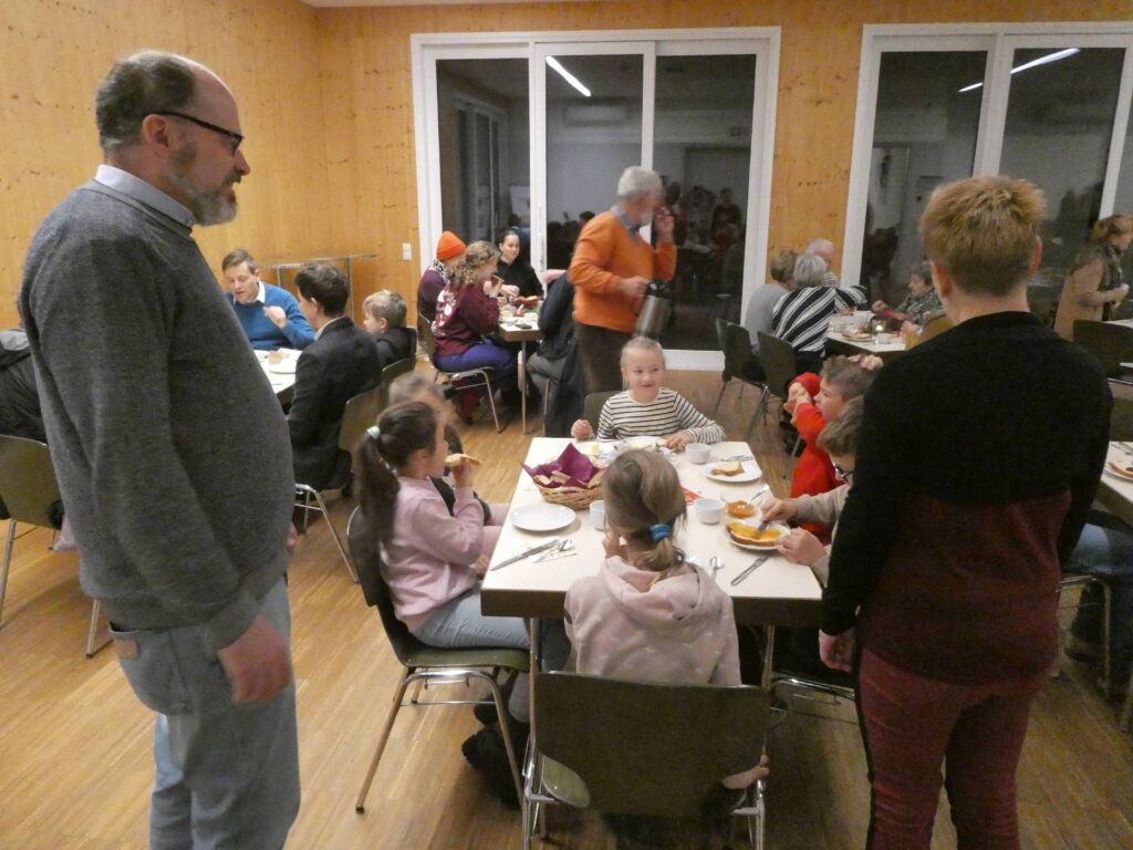 Im Pfarrheim trafen sich danach viele zum gemeinsamen Frühstück und womit niemand gerechnet hat: Brot und Selbstgemachtes war schnell ausgegangen, der Bäcker in der Nähe hatte Gottseidank genügend Nachschub, sodaß keiner hungrig in die Schule oder Arbeit gehen musste.