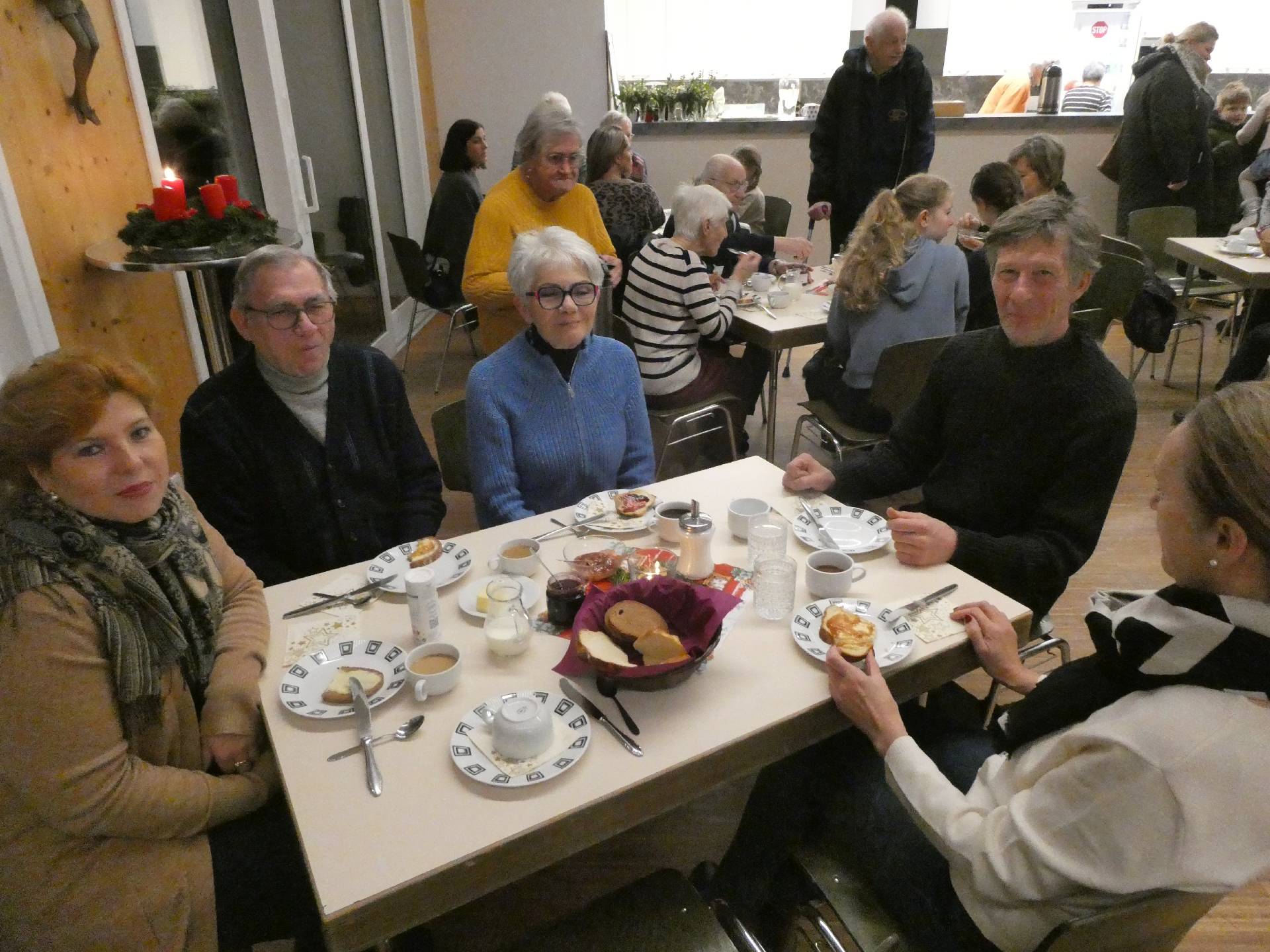 Im Pfarrheim trafen sich danach viele zum gemeinsamen Frühstück und womit niemand gerechnet hat: Brot und Selbstgemachtes war schnell ausgegangen, der Bäcker in der Nähe hatte Gottseidank genügend Nachschub, sodaß keiner hungrig in die Schule oder Arbeit gehen musste.