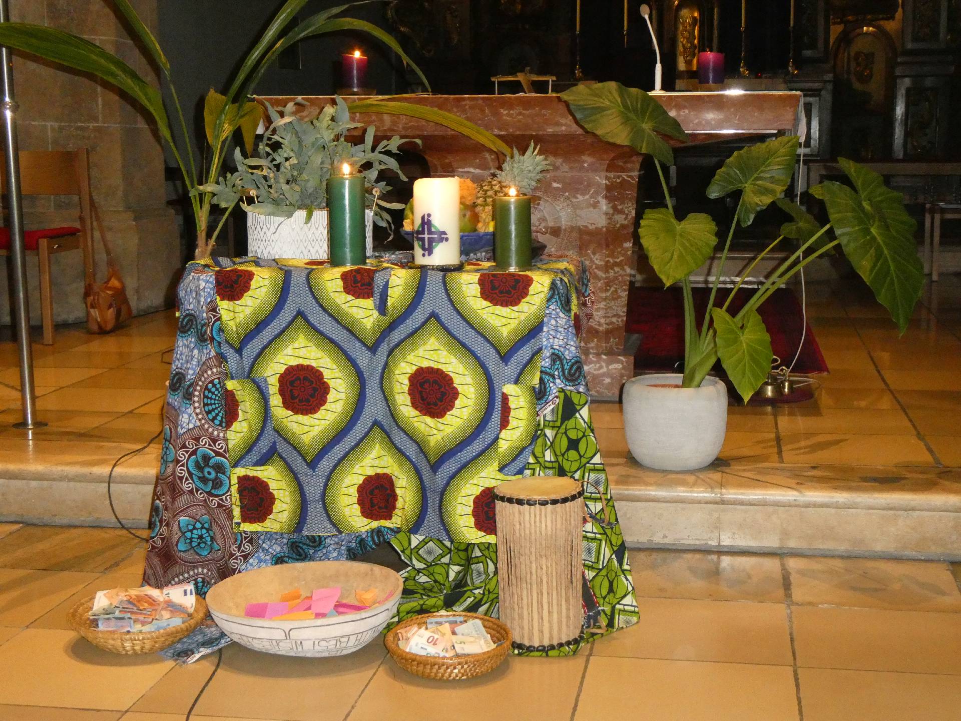 Dass wir besonders bunt und authentisch feiern konnten, verdanken wir lieben Familien aus unserer Pfarrgemeinde, die uns Kleider, Stoffe, Skulpturen und Musikinstrumente aus Nigeria zur Verfügung stellten.