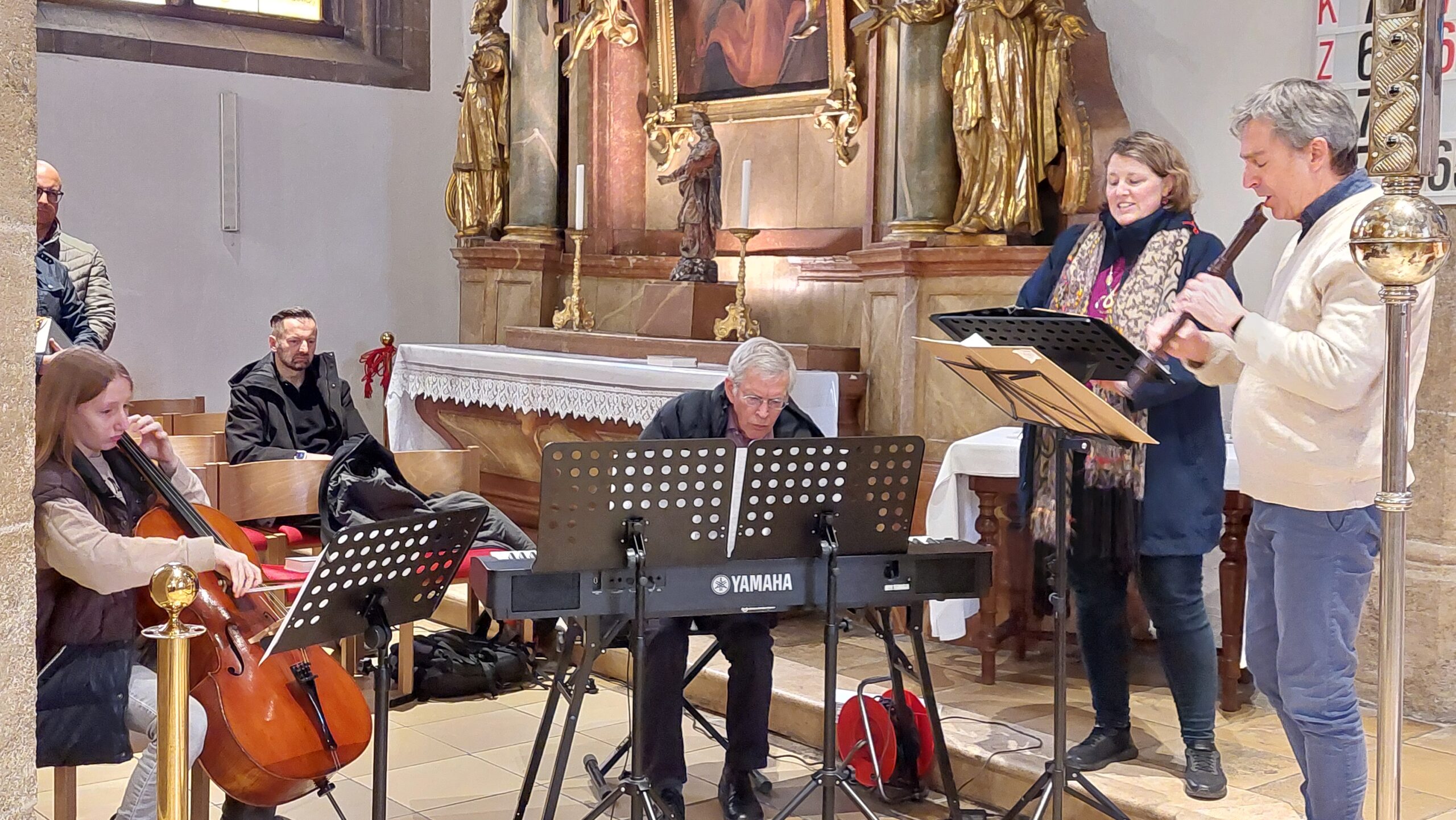 Robert Krepp (Klavier), Nicola Bodensdorfer (Sopran), Johanna Baumgartner (Chello) und Douglas Deitemyer (Flöte) Georg Philipp Telemann: „Lauter Wonne, lauter Freude“ Georg Philipp Telemann: „Durch Glut und Schlag“ Philipp Heinrich Erlebach: „Ich lasse Gott in allem …